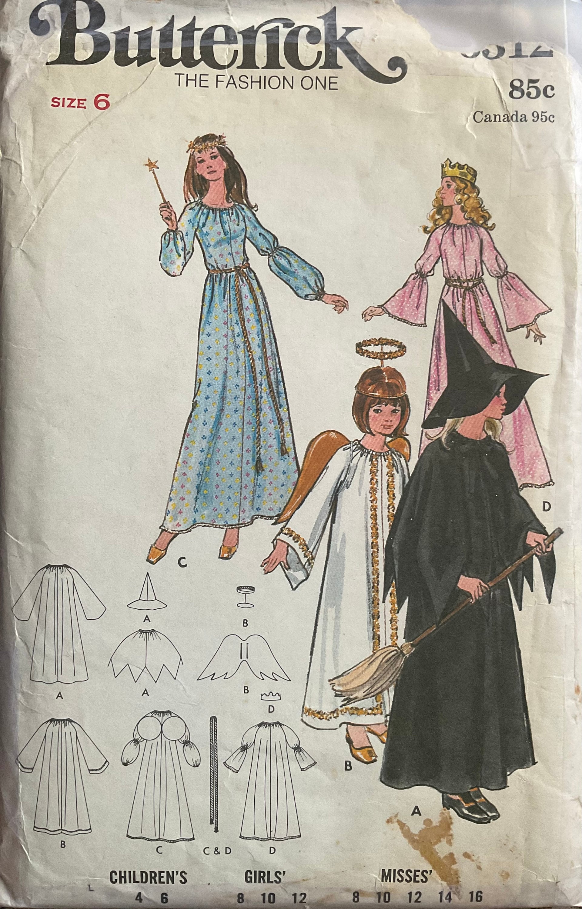 Butterick 6312 Witch Angel Fairy Princess Halloween Costume Vintage Se Vintagestitching Vintage Sewing Patterns